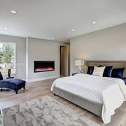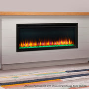 The SimpliFire Allusion Platinum Electric Fireplace is a built-in linear electric fireplace designed to deliver a clean, contemporary finish with extensive visual customization. Engineered for recessed installation, this model eliminates the need for gas lines or venting while providing a wide flame presentation suited to modern living spaces. Multiple flame themes and ember bed color options allow precise control over ambiance, and the included media enhances depth without maintenance. Select installations can accommodate wall mounting or a freestanding presentation using optional accessories. With flame-only operation, adjustable heat, and flexible placement beneath artwork or a TV, the SimpliFire Allusion Platinum Electric Fireplace is chosen for projects prioritizing design versatility and ease of installation.